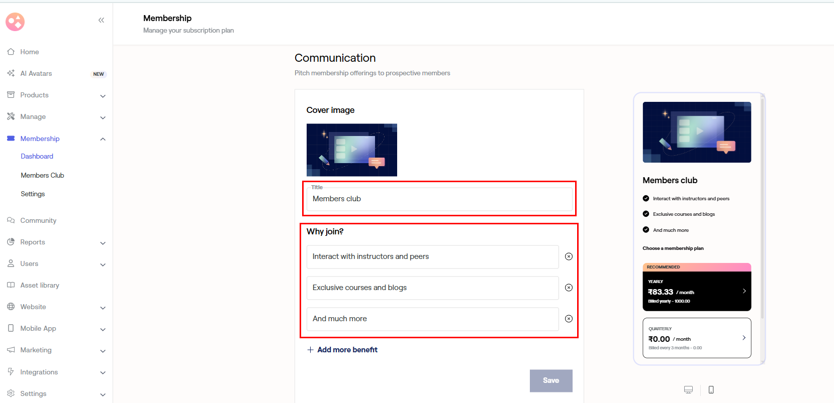 Add or edit your Membership title and enter perks under Why join?