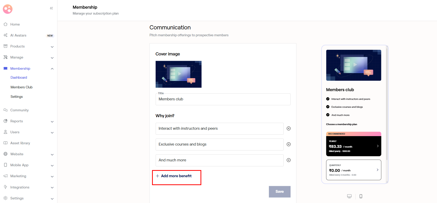 Membership will allow you to launch exclusive courses, blogs, and a group chat for your community.