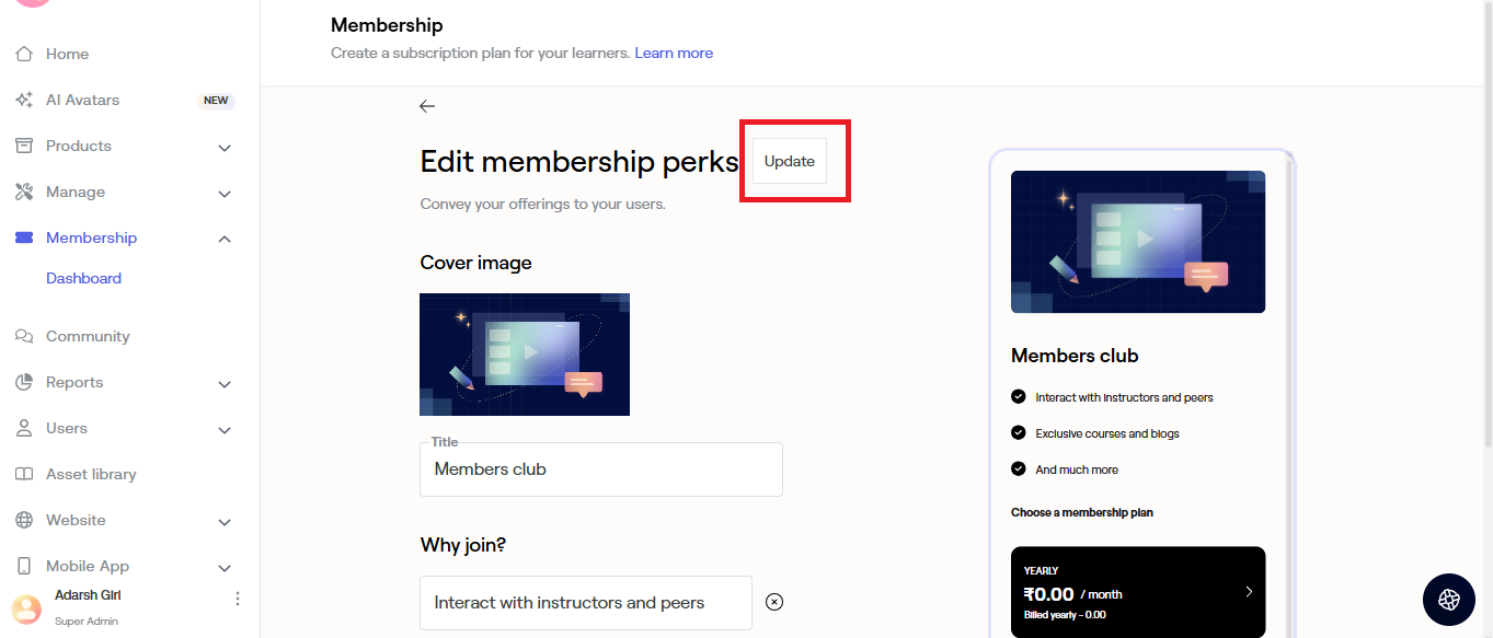 Now your learners can easily access membership on their mobile devices. For membership to reflect on their mobile apps, please push a new update on Google Play Store and App Store and update your existing applications.