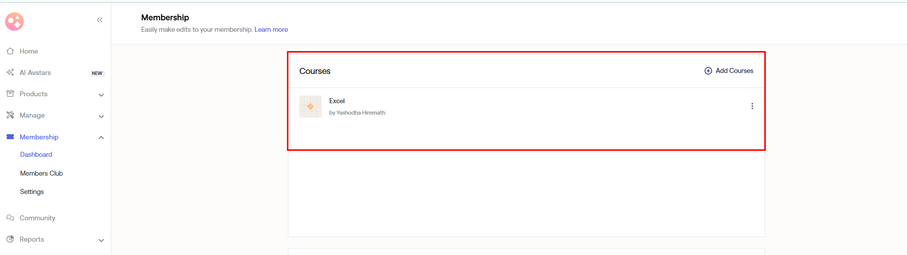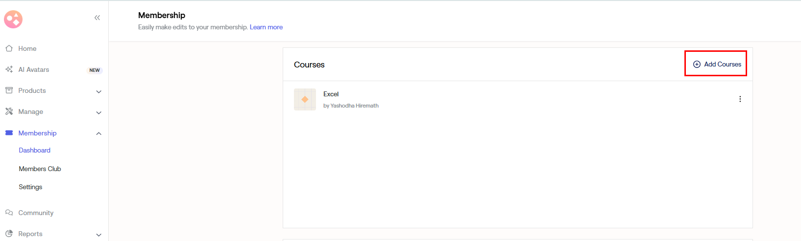 a) You can add courses directly from the membership dashboard.