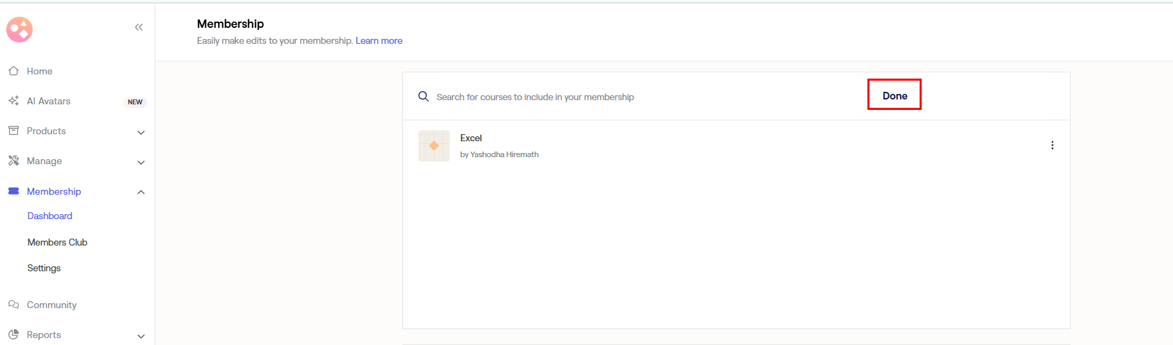 Tap Done. And your course is successfully added to the membership dashboard.