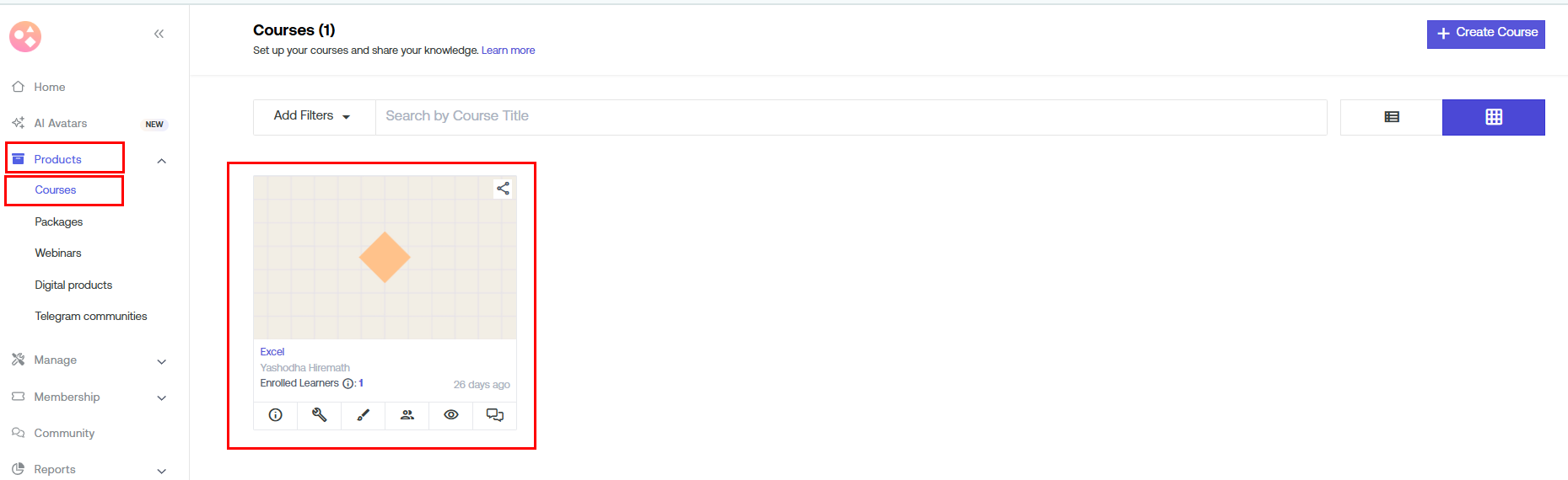 b) Go to your Seekhly Dashboard > Products > Courses.