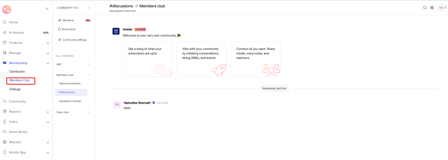 b) Go to Members Club under Membership. Select discussions.