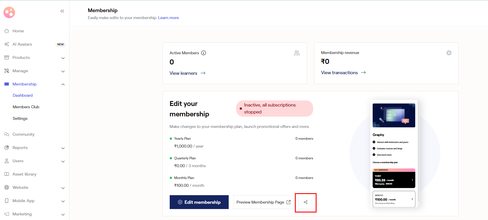 Once you have set up your membership, you can share the link on different platforms.