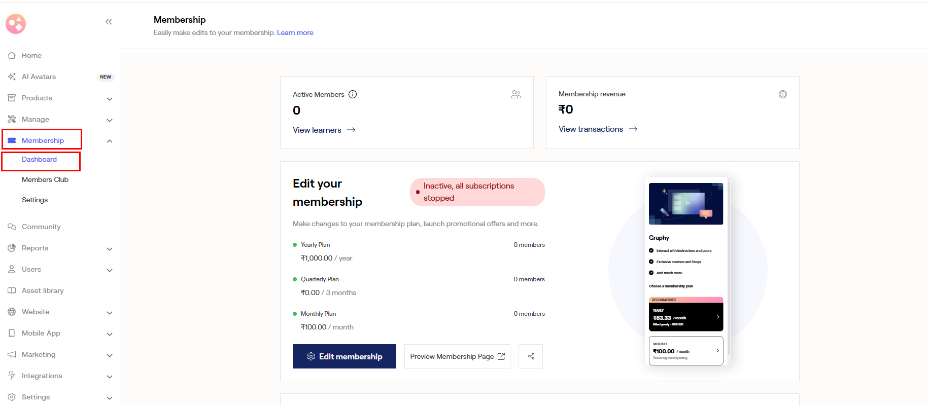 Go to the left panel > Membership > Dashboard.