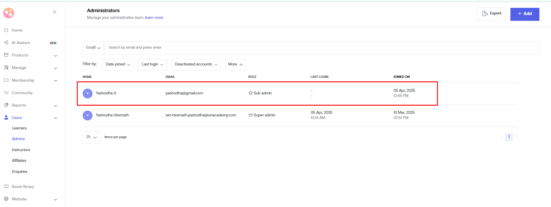 Members - It will help you manage admins and learners from a single space.