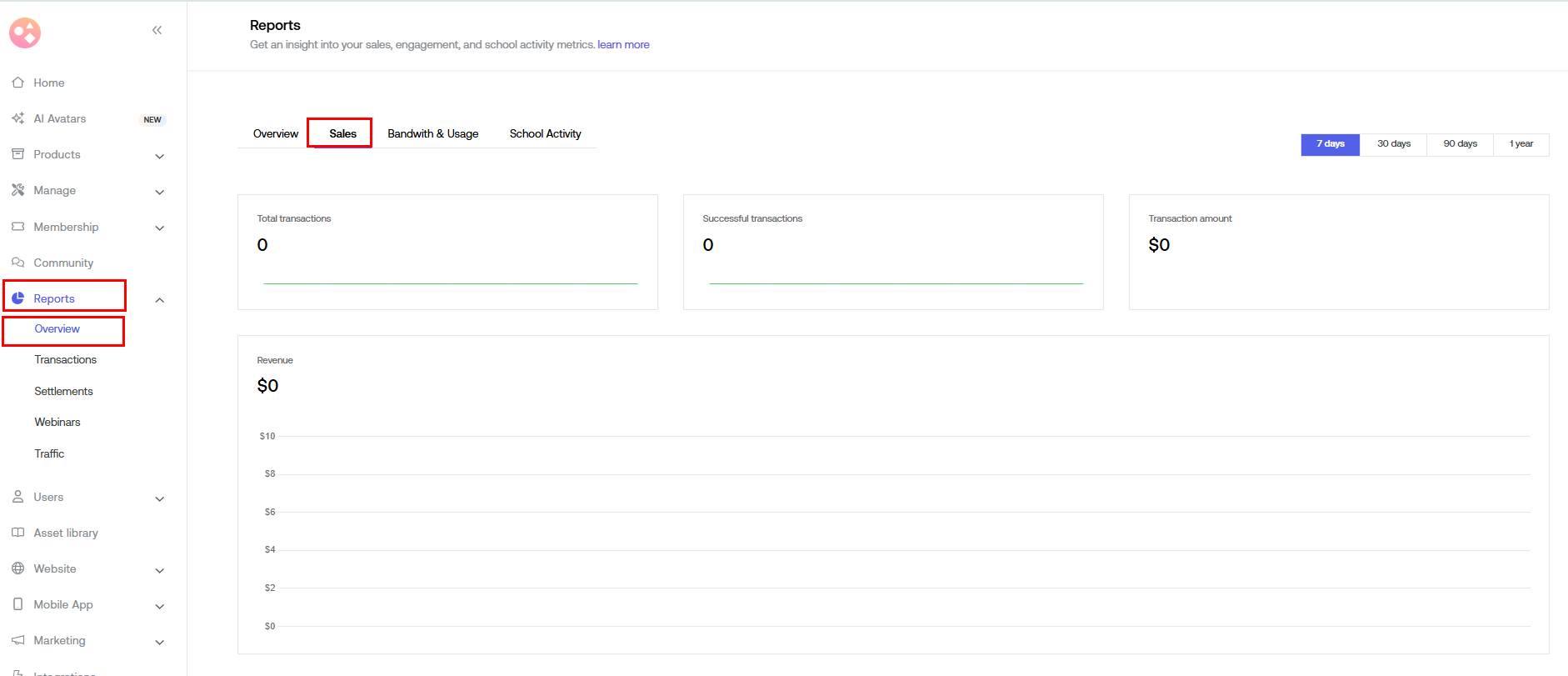 Go to your Seekhly Dashboard > Reports > Overview > Sales.