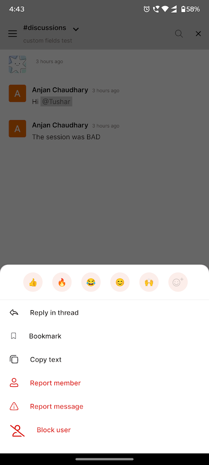 To report an inappropriate post, the member can click on the drop-down menu on the post and click on 'Report message'.