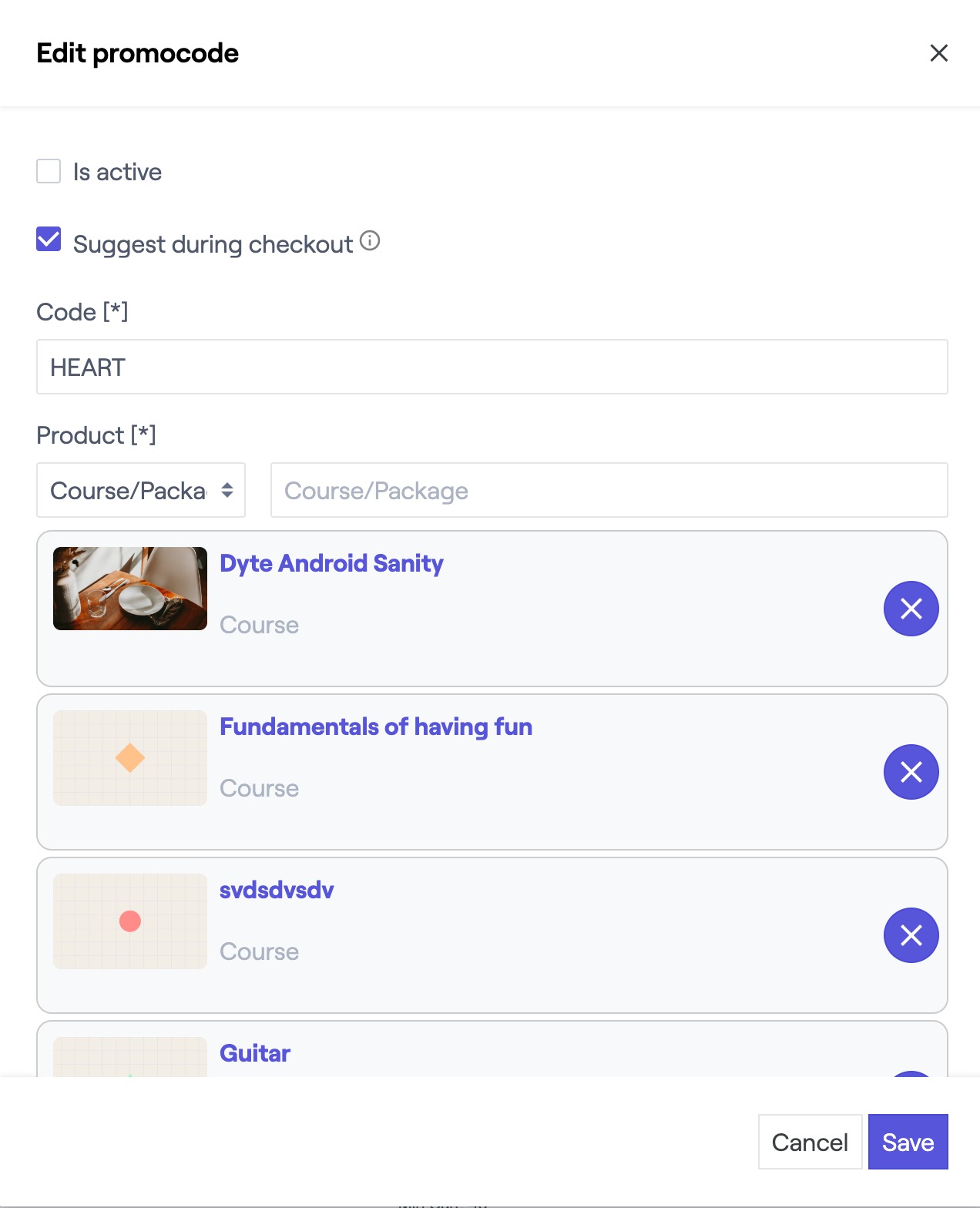 1. Go to ‘Promo Codes’ in the main menu. Select the code that complements your campaign strategy.