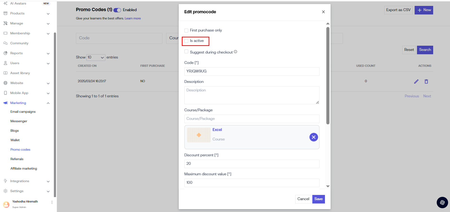 Promo Codes are the uniquely generated discount codes using which students can buy your courses at a discounted rate.