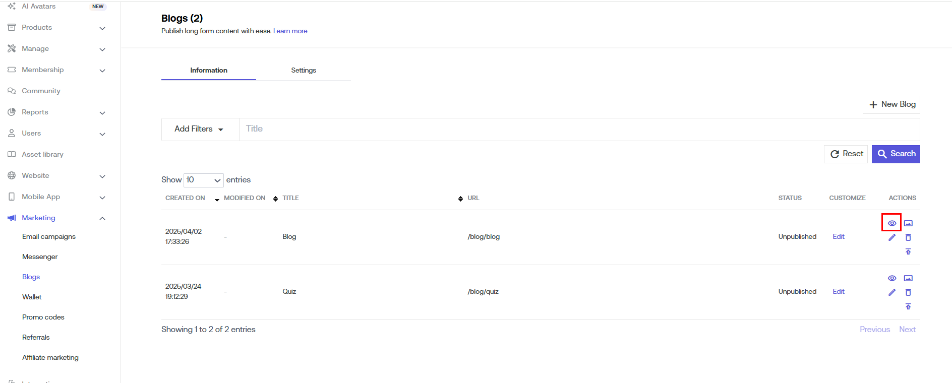 Before publishing the blog, you can take a look at how it's going to appear on your website once published.