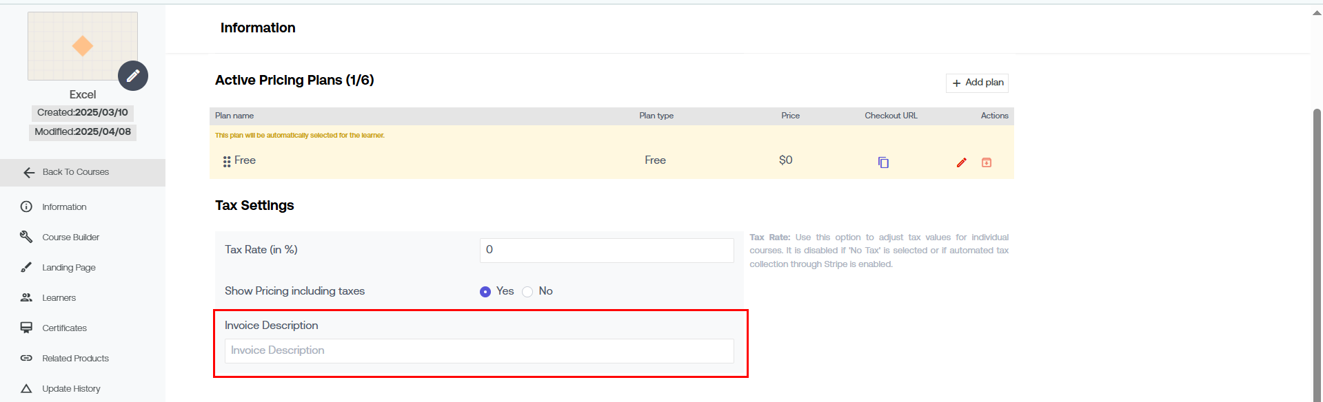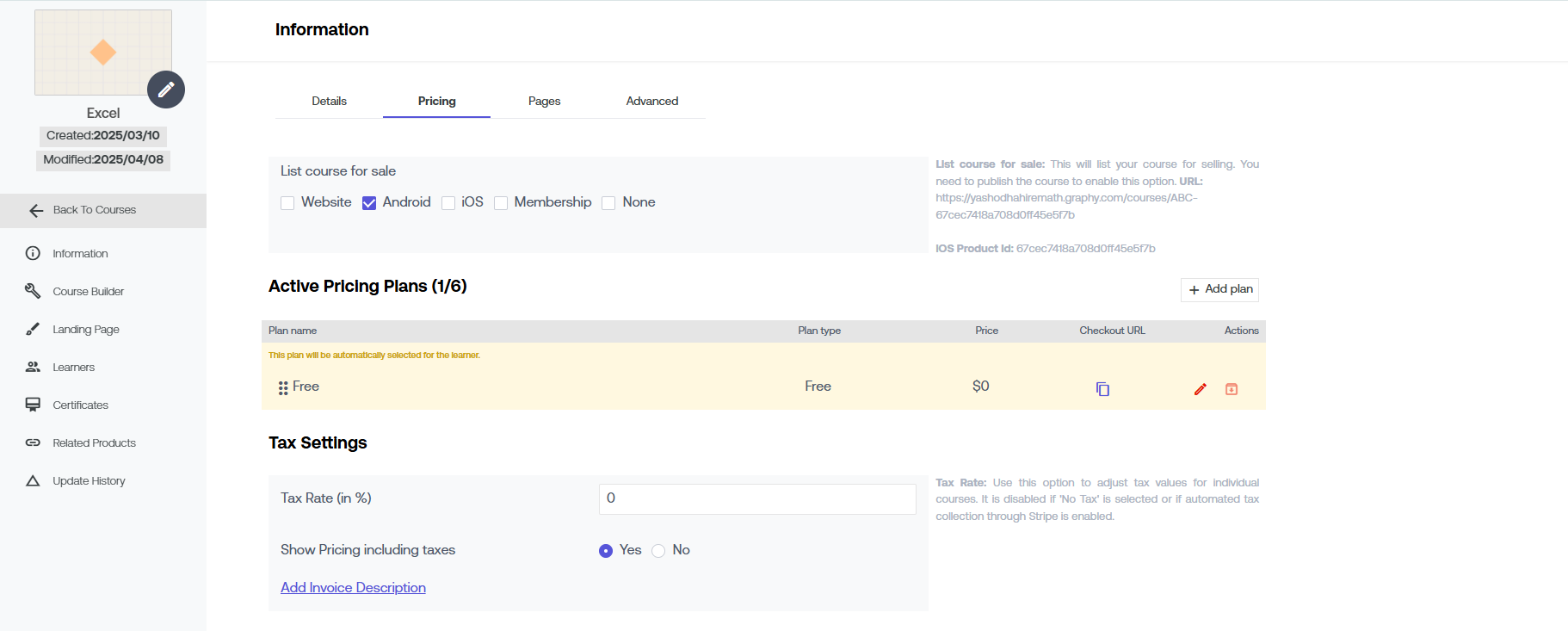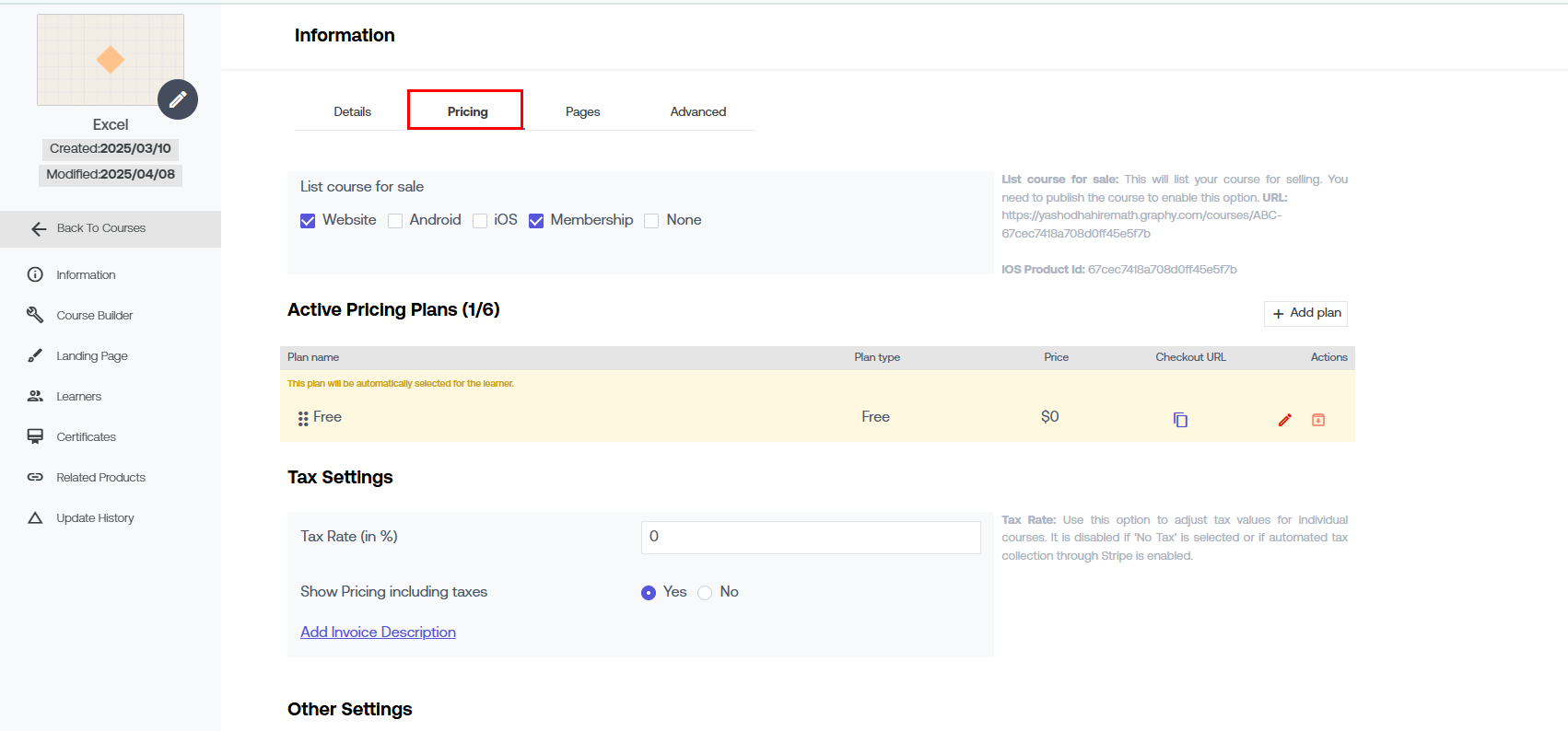 Know how to set up pricing plans & duration for the course here.
