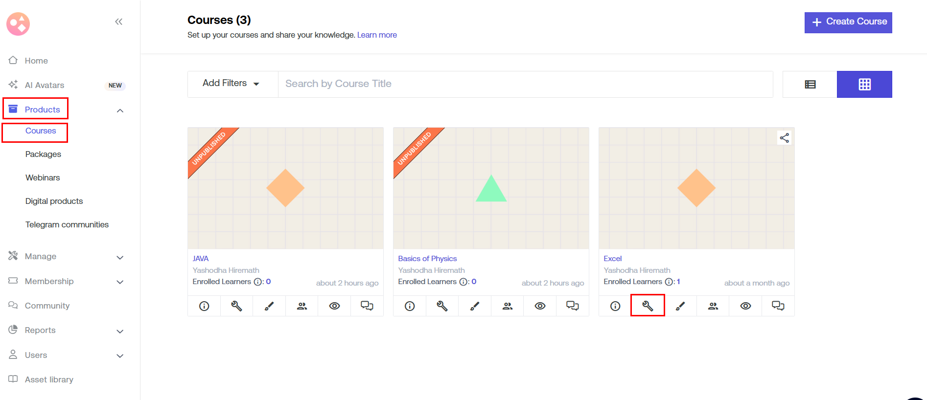 Log in to your Dashboard > Products > Courses