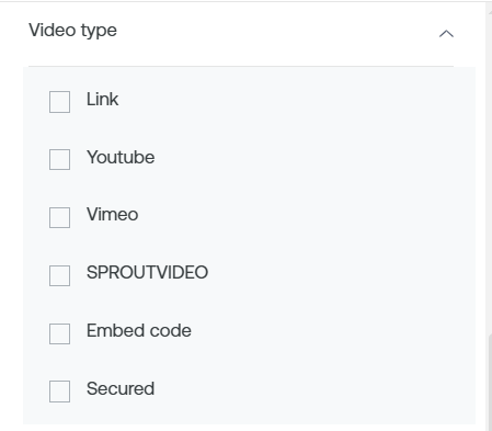 Video Type: This filter gives you the option to select the type of video. It could be a link, YouTube, Vimeo, and others.