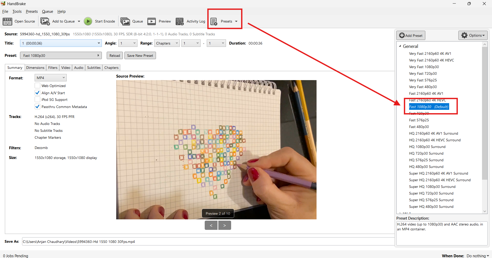 Fast 1080p30 – good quality and speed for general use.