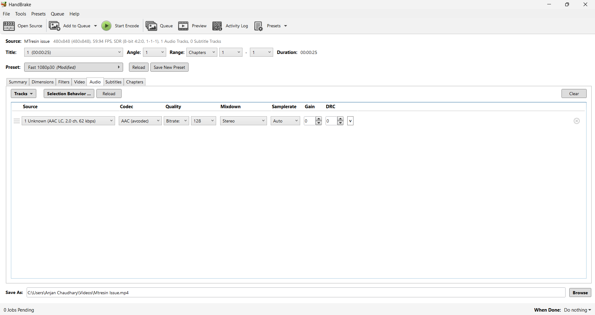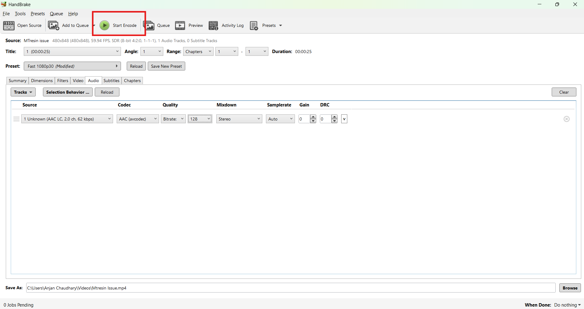 Click on the “Start Encode” button at the top of the window.