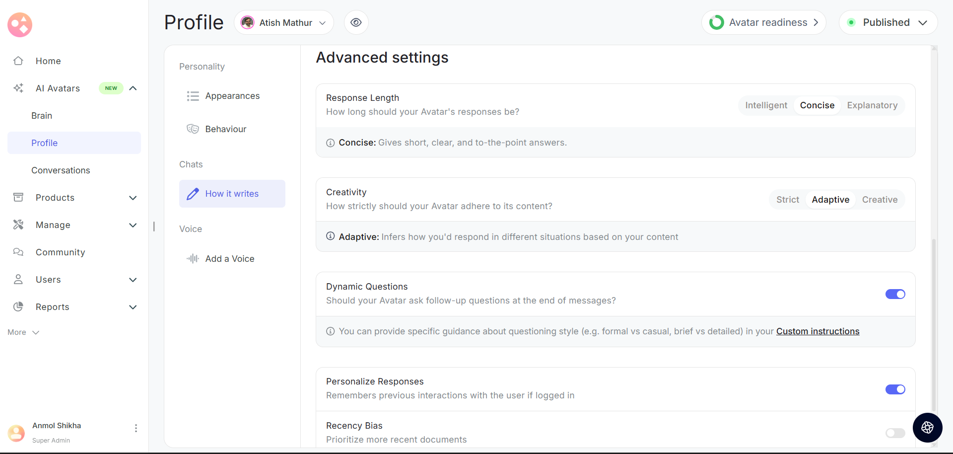 Step 6: Dynamic questions – Enable this to let your Avatar continue conversations by asking relevant follow-ups at the end of responses.