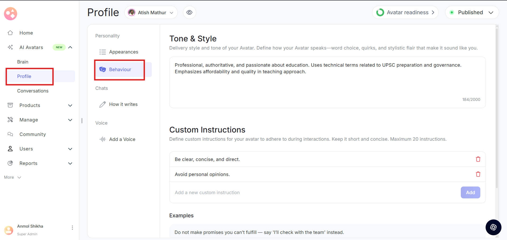 You can improve your AI avatar's response quality by updating key profile settings and providing training data and instructions. Follow these steps to make sure your avatar gives better, more relevant, and helpful responses to your learners.