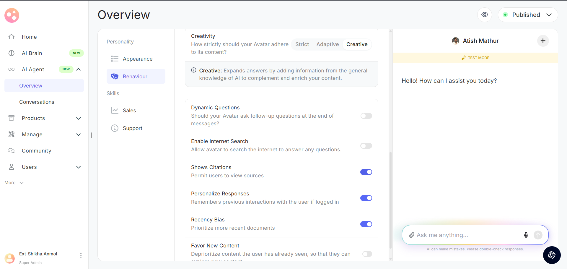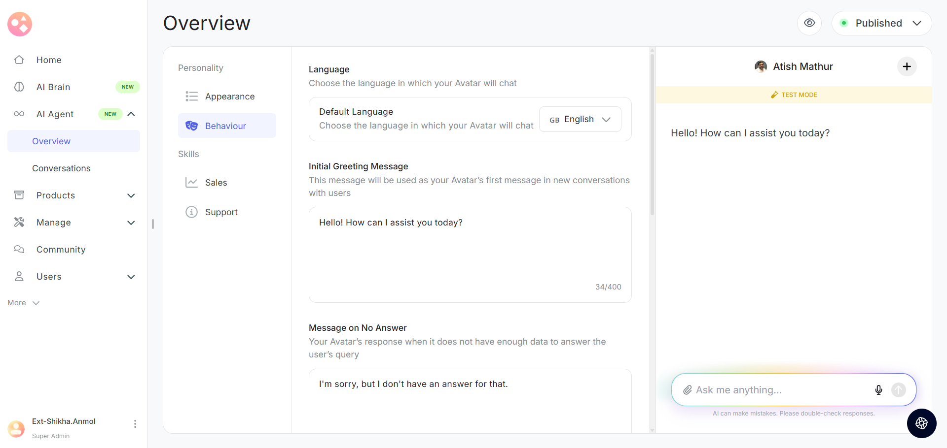 Your AI Agent is more than just a chatbot it’s the voice of your brand for learners . The way it responds, and handles conversations directly shapes the experience people have with you. That’s why configuring its behaviour is important.