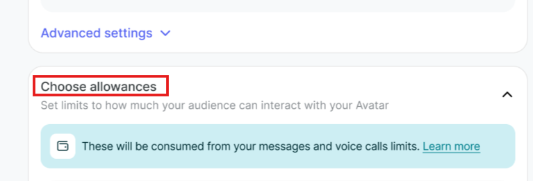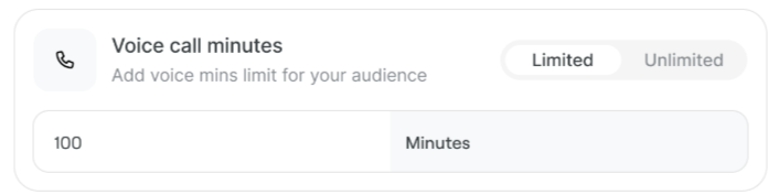 Under the heading, you will see a note: "These will be consumed from your messages and voice call limits." The allowances you set here define the maximum amount of interaction your audience gets, which is then deducted from your overall usage limits.