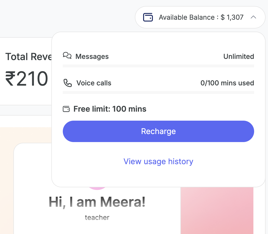 Once you have consumed your message and voice call limits, you will have to recharge your Seekhly wallet.