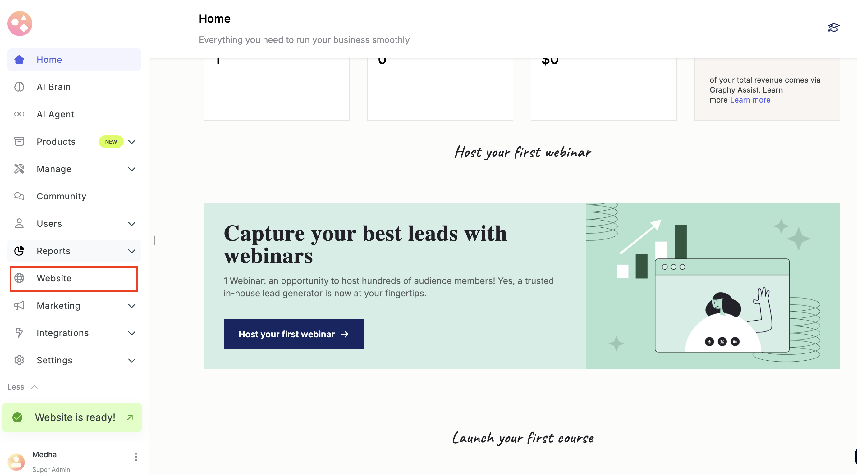 Step 1: From your Seekhly dashboard, go to the left panel and click on Website.