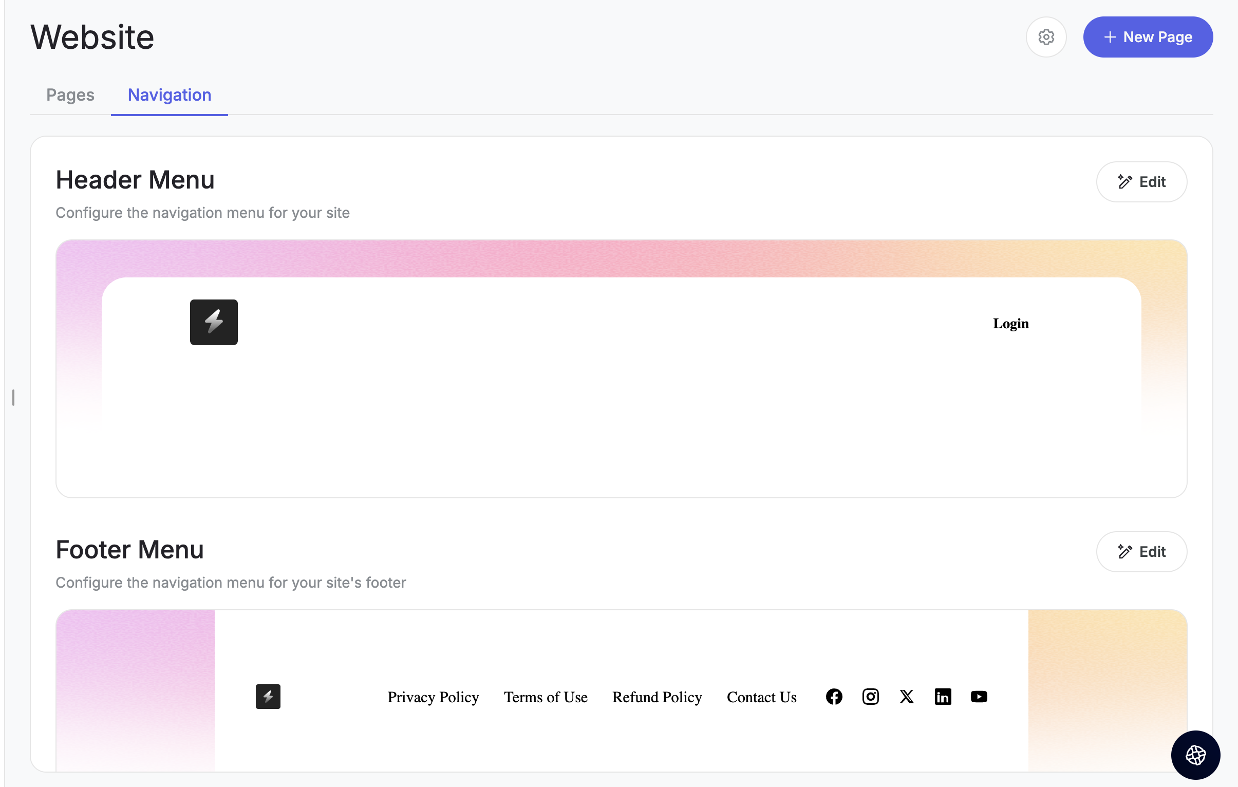 This article explains how to customize the header menu, footer, and footer menu that appear across all pages on your Seekhly website.