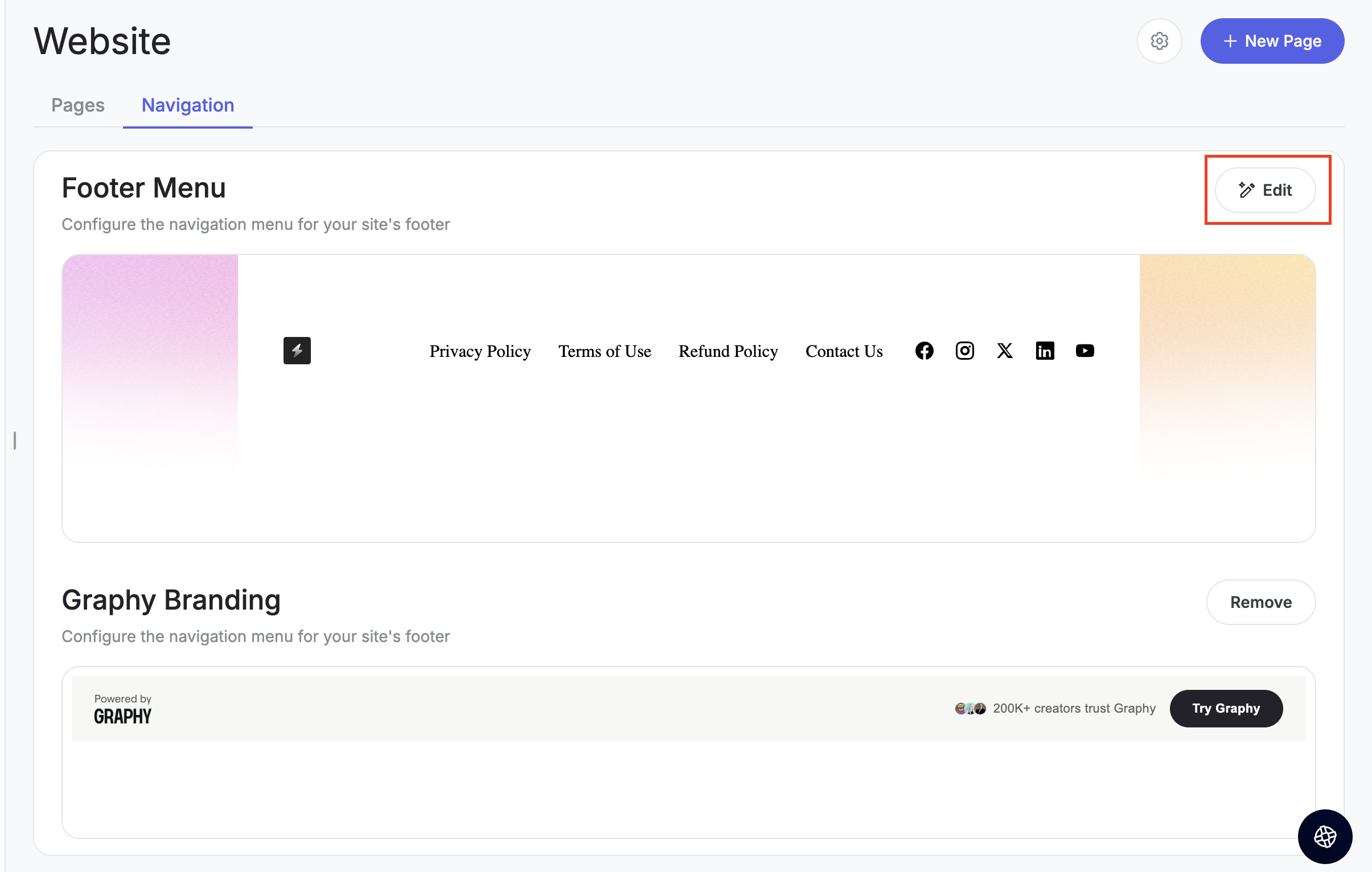 Step 5: In the Navigation section, find the Footer option and click on Edit.