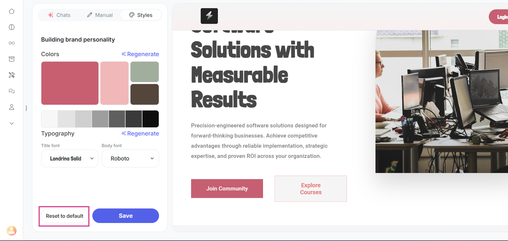 Simply click on the regenerate option and let the system generate new color combinations that match your brand and content.
