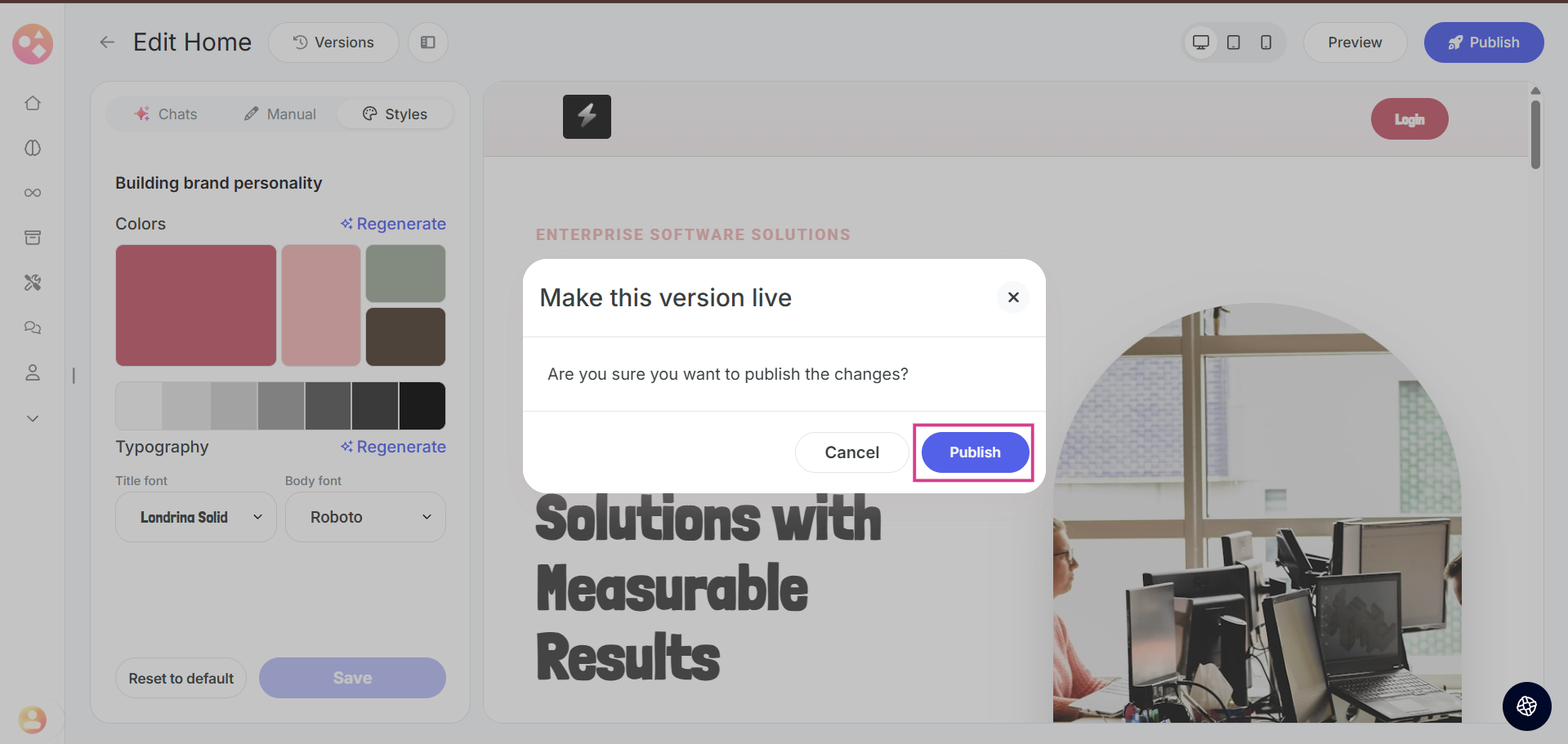 Step 2: You can regenerate different color schemes to give your page a fresh look.