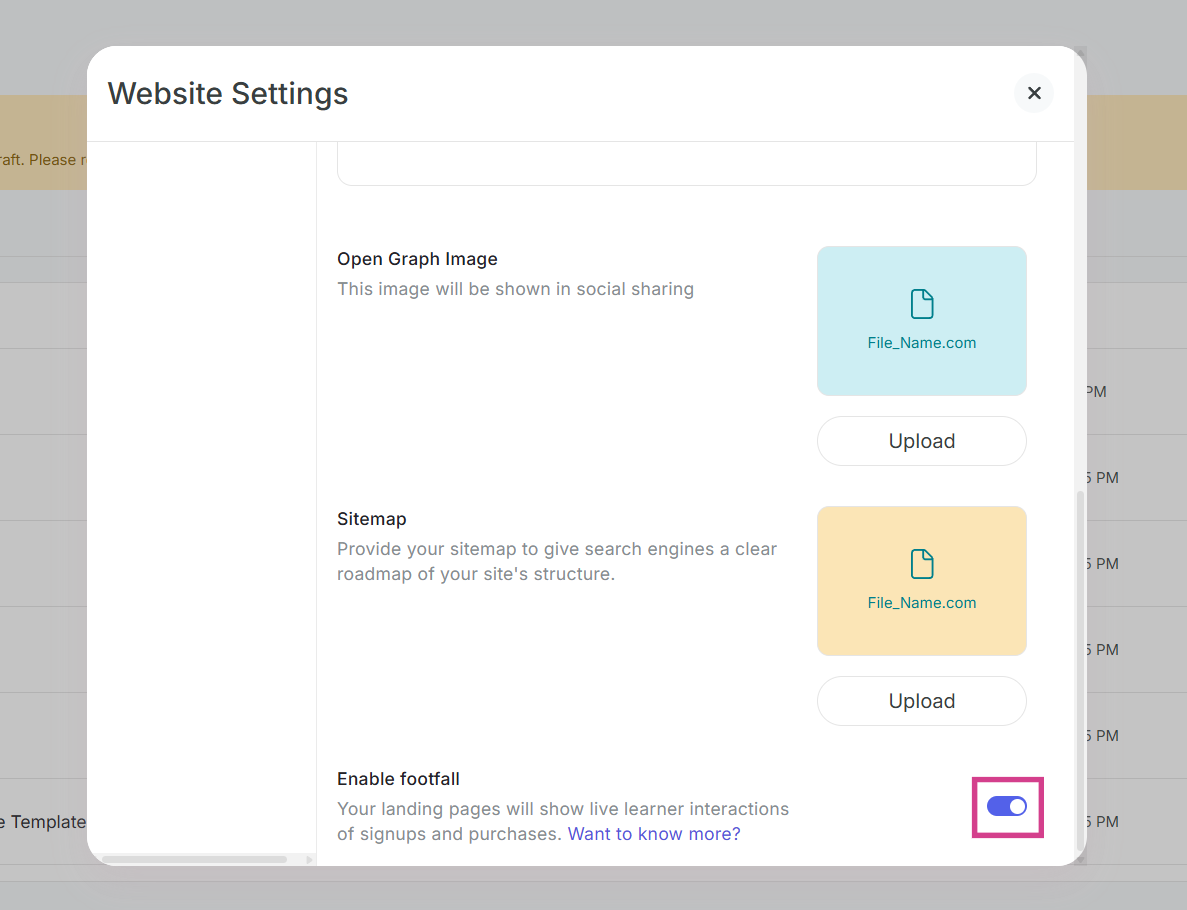 Step 9: Enable footfall to show live activity like sign-ups and purchases as a banner on your website.
