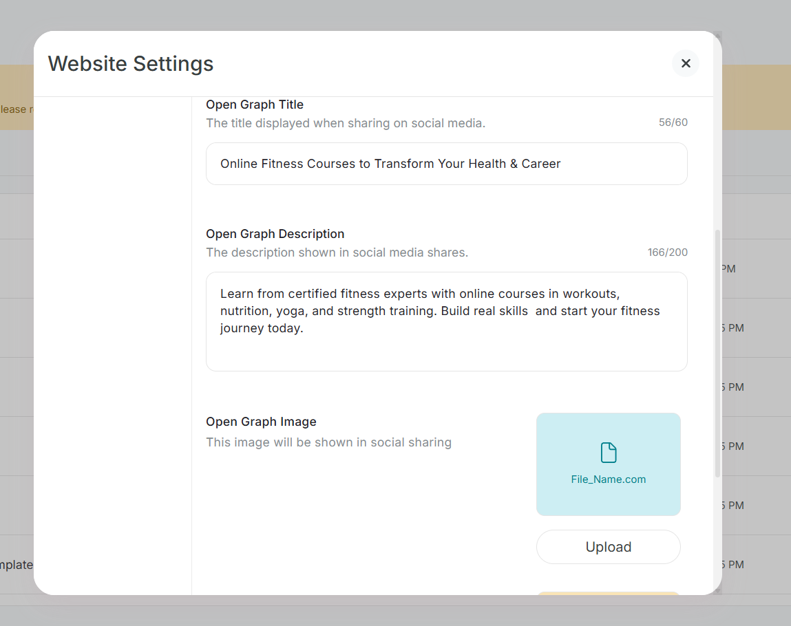Step 7: Upload an image that will be shown when someone shares your website link.