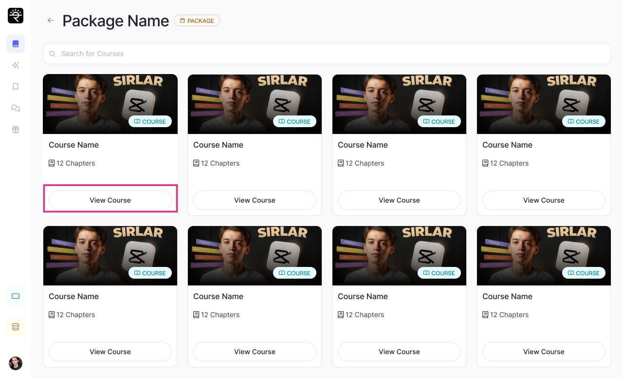 The learner is redirected to the package view where they can see all the courses included in that package. Browse through all available courses within the package.