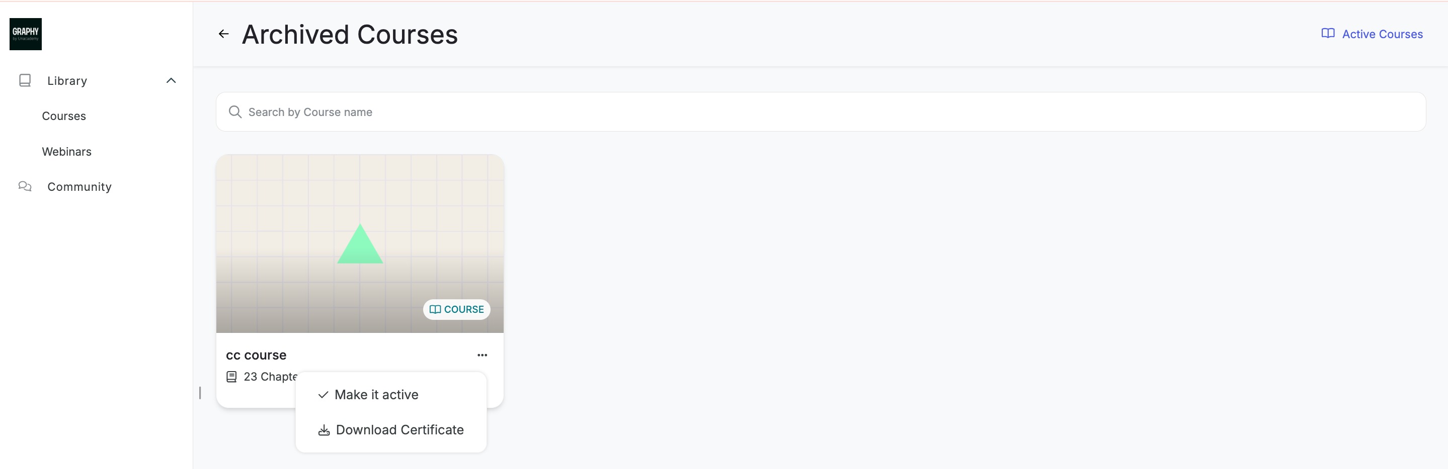 In the Archived Courses section, you will see all your archived courses and packages. You can make it active by clicking on Make it Active option under the 3 dots. This will ensure that these courses are visible under Active Courses again.