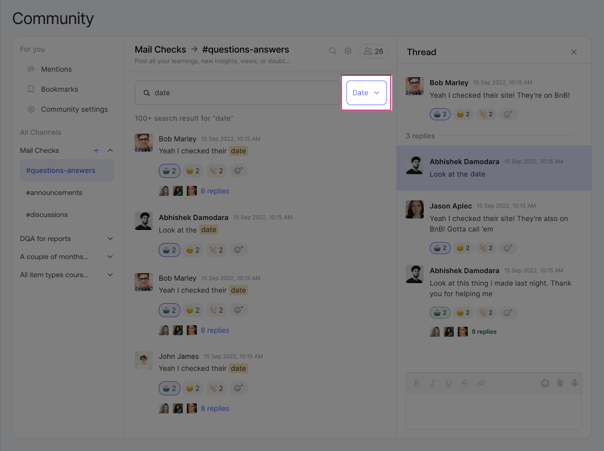 A date filter has been added to help you narrow down results. You can filter chats based on when they were posted, making it faster to find recent or older conversations.